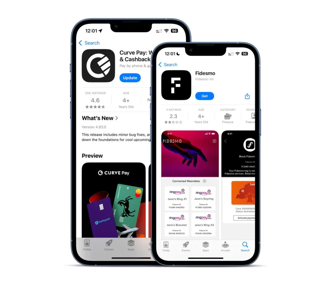 Nyisd meg a Fidesmo appot, válaszd a „Connect wearable” (viselhető eszköz csatlakoztatása) opciót, és kövesd a lépéseket az összekapcsoláshoz. Ezután össze kell kötnöd a virtuális Curve Pay-kártyádat a Fidesmo rendszerrel, amely a bankkártyádhoz kapcsolódik.