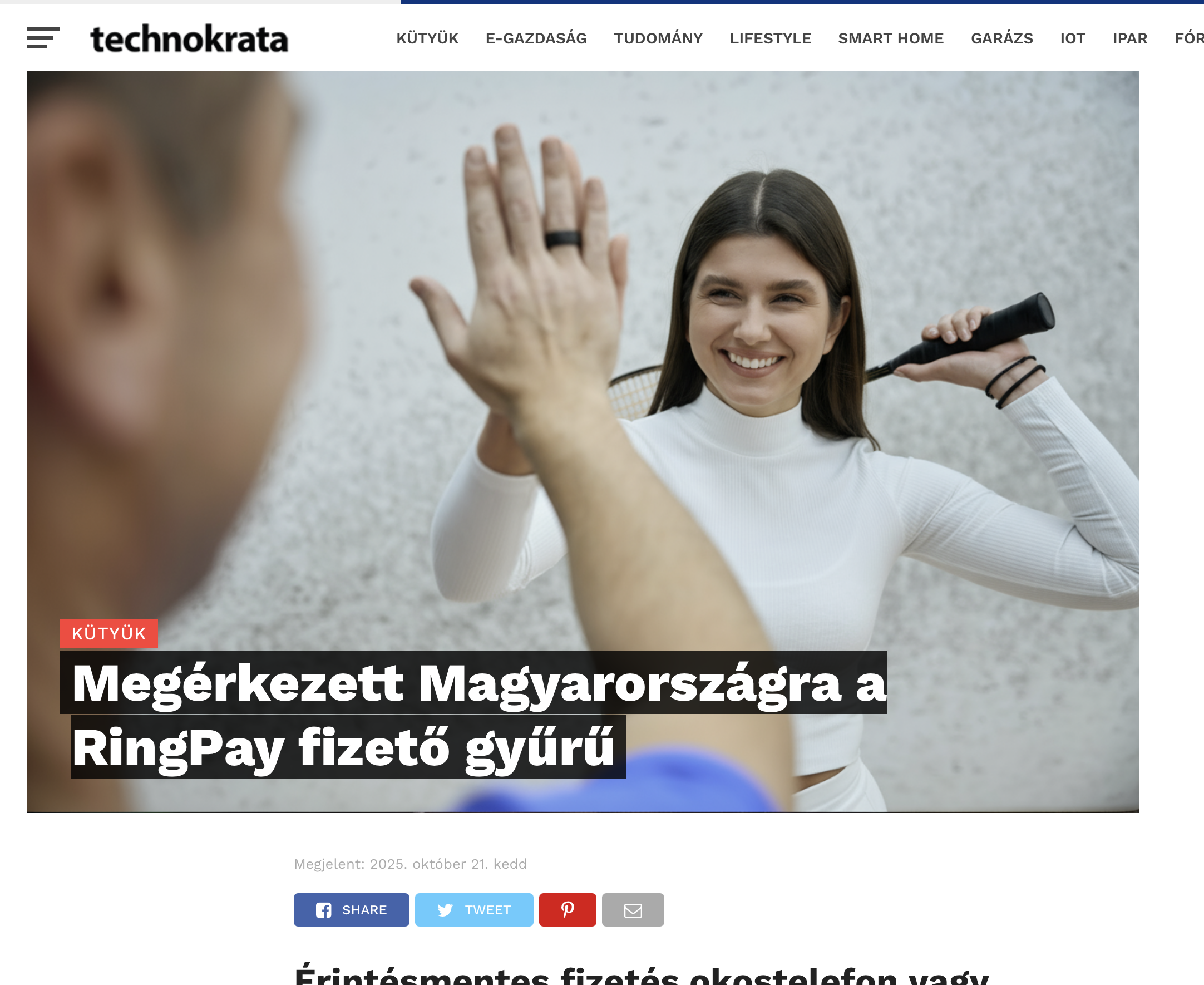 Technokrata.hu: „Megérkezett Magyarországra a RingPay fizető gyűrű”